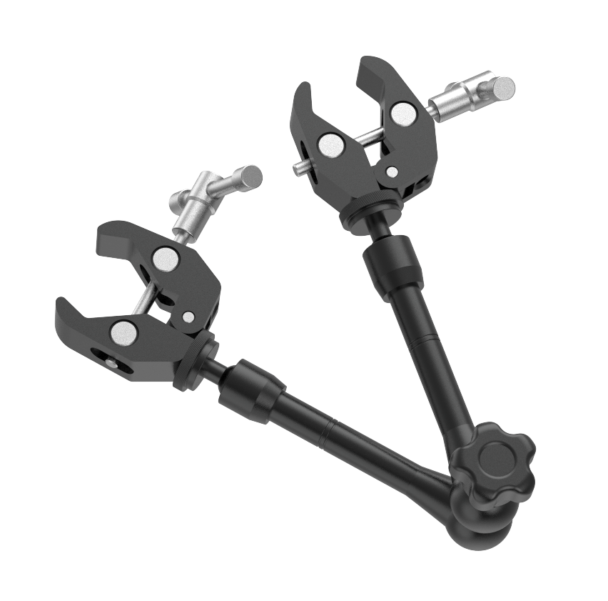 The ZX-SM1-2 is a multi-functional magic hand assembly made of aluminum alloy, featuring a dual-clamping structure design. Each movable joint can be simultaneously secured via a single-point locking mechanism, enabling rapid adjustment and stable positioning. The product boasts excellent flexibility and adaptability, allowing for easy installation in various locations for fixing and supporting cameras, light sources, and various auxiliary components, meeting diverse installation needs in machine vision and experimental applications.